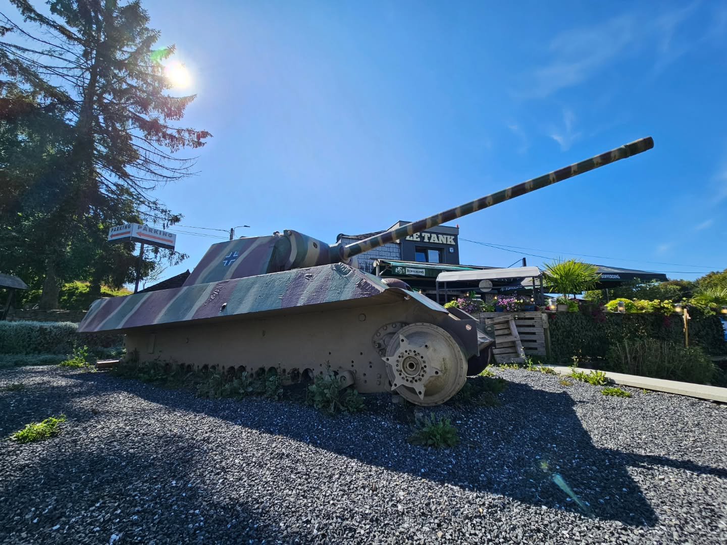 The tank lay abandoned at the side of the road until Marthe herself acquired the tank in 1948. She promptly installed it on the terrace outside of her cafe, which was then fittingly renamed “Le Tank”.