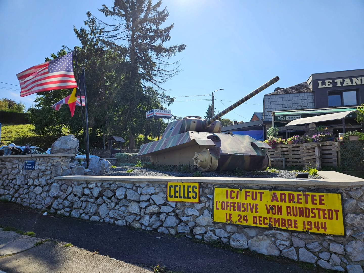 At the crossroads leading into the small Walloonian village of Celles, on the edge of the Ardennes, sits a German Panther tank that was knocked out during the battle.