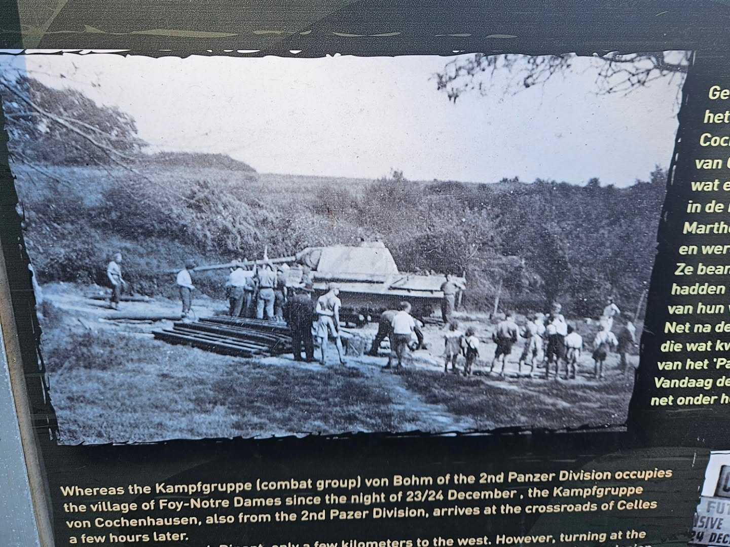 So the story goes, on the night of the 23rd/24th December 1944, an armoured column from Kampfgruppe von Cochenhausen (from the 2nd Panzer Division) approached the crossroads as part of their drive towards the town of Dinant which lay on the vital river Meuse.